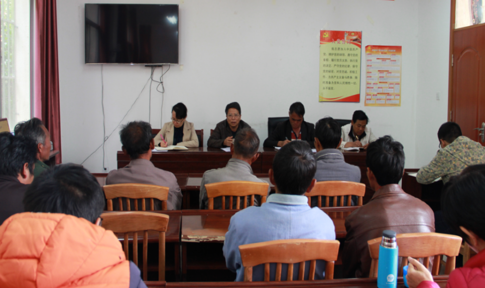走访结束,李元标主席在村委会会议室给大山脚村委会班子、各村民小组党员群众宣讲十九大精神。李元标通过讲述党和国家发展的历史进程,介绍了十九大召开的重大意义,全面系统的阐述了习近平新时代中国特色社会主义新思想。他强调,面对新时代,一定要有新思考、新作为,要求基层党员同志要认真学习贯彻党的十九大精神,坚持以习近平新时代中国特色社会主义新思想为指导,牢牢扭住全面建成小康社会奋斗目标,紧盯“两不愁、三保障”基本标准,结合本村实际,选准发展重点,加快构建产业体系,充分发挥基层党组织作用,不断拓宽贫困群众致富门路,坚决打赢脱贫攻坚这场硬仗。他强调,脱贫攻坚已经到了关键时期,要从实际出发,引导群众发展特色产业,促进贫困群众持续稳定增收。基层党组织和驻村帮扶工作队要认真履行责任,在项目、资金、措施等方面再聚焦再精准,帮助每家每户算好精细账,下足“绣花”功夫解决深度贫困问题,确保全面小康路上一个都不掉队。